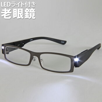 ライト付 リーディンググラス 老眼鏡 [シニアグラス] ガンメタル LED ライト付き 軽量 スタンダード