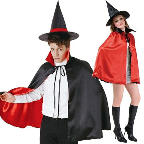 お手持ちの洋服に羽織るだけで魔法使いに大変身!リバーシブルだから組み合わせは無限大!ドラキュラやメイドなど、どんなコスとも相性バッチリ!【セット内容】帽子、マント【素材】ポリエステル100%【着丈】マント:77【開き】マント:前リボン開き【裏地】無しリバーシブル【その他パーツ情報】帽子:頭周り60cm(あごゴムつき)※☆