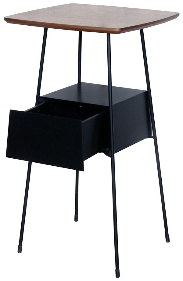 サイドテーブル 引き出し 収納付き ナイトテーブル 高級感 ウォールナット スチール 寝室 ベッドサイドテーブル ソファーサイドテーブル リビング 花台 プランター台 飾り棚 ガルン おしゃれ モダン 北欧 シンプル